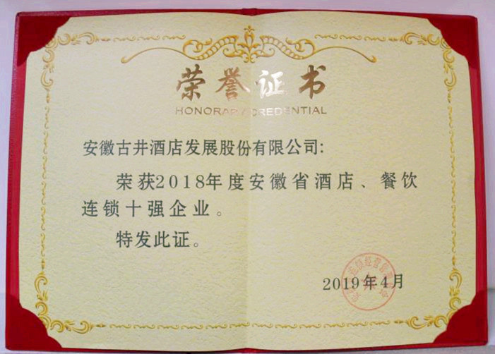 4月25日,,,,,安徽省连锁谋划管理协会揭晓“2018年度安徽省旅馆连锁十强企业”名单,,,,,安徽优德88官网网站旅馆生长股份有限公司荣登榜首。。。。。。。。
