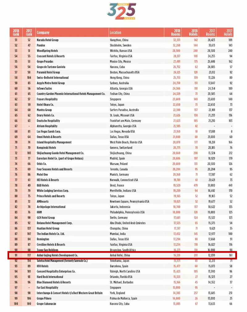 据悉,,,,,,《HOTELS》杂志已一连48年在全球170多个国家刊行,,,,,,其行业视察和测评笼罩了各国家拥有50间以上客房的所有旅馆,,,,,,是全球旅馆业重点关注的杂志之一。。。。。。它的年度全球旅馆集团325强排名,,,,,,是《HOTELS》为人所知,,,,,,也是业内有着名度的旅馆集团排名系统。。。。。。